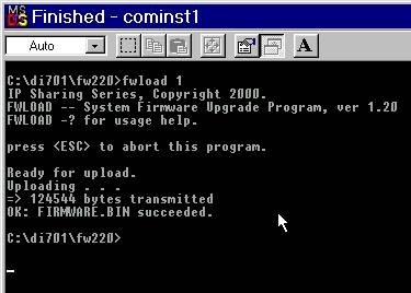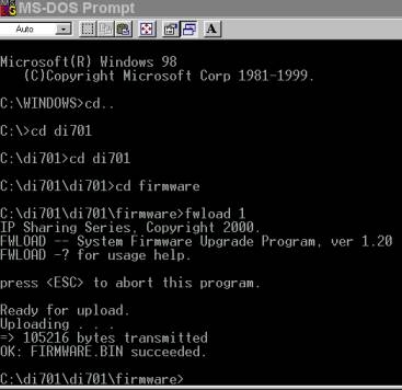C:\di701\fw220.4>fwload 1 and press Enter